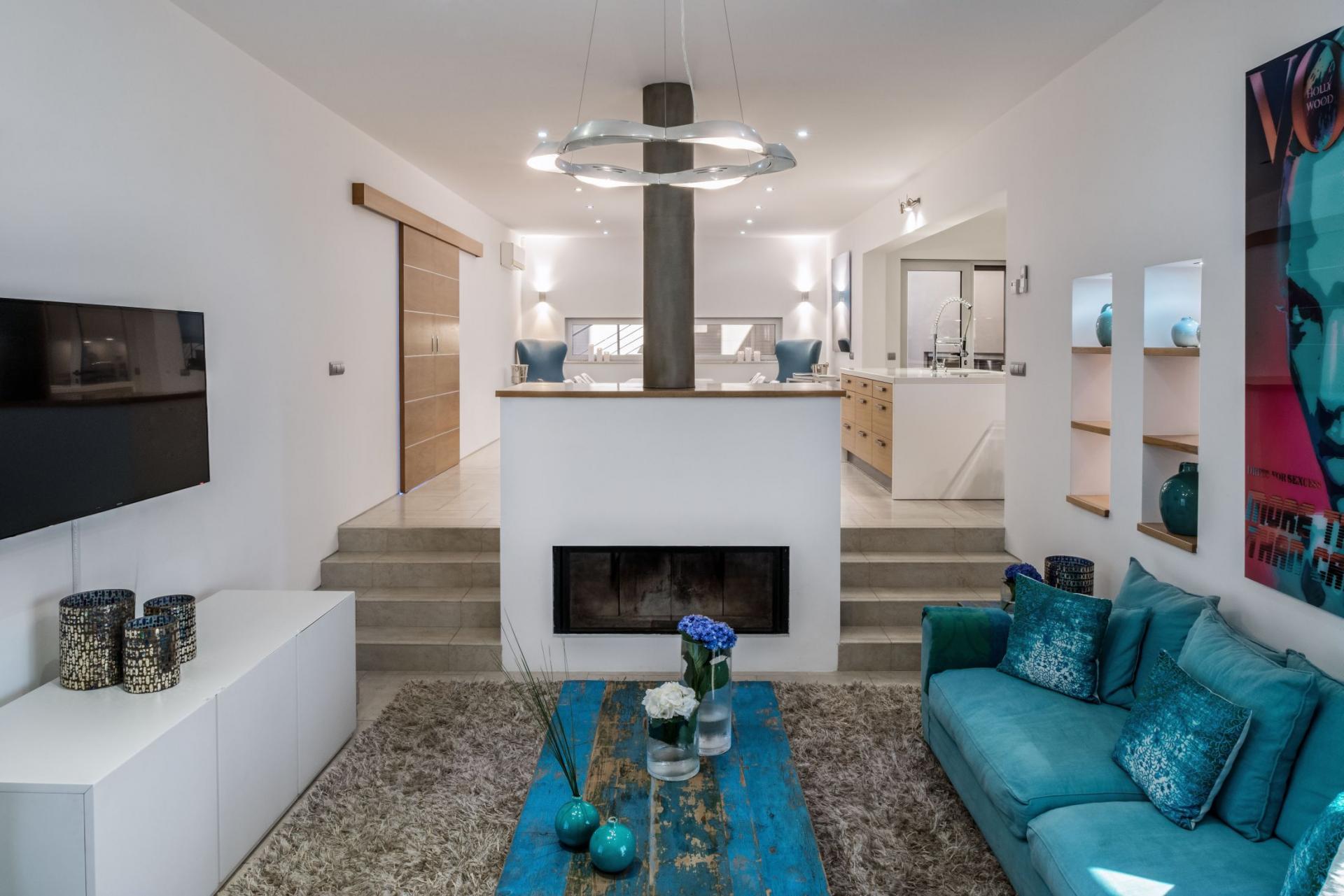Decorated with a classy style in mind, Villa Mar Azul's interiors exude a modern and chic design, complemented by contemporary artwork, giving a unique character to the property. As you step inside, a two-level living area conveys an airy ambience with postcard-worthy views of Salema Beach and Sagres. Plush sofas will allow you to enjoy a break from the sun, while a fireplace will set a cosy atmosphere when staying during colder months. On the upper level, a spacious dining table and a fully-equipped modern kitchen create an elegant setting for dinners together.