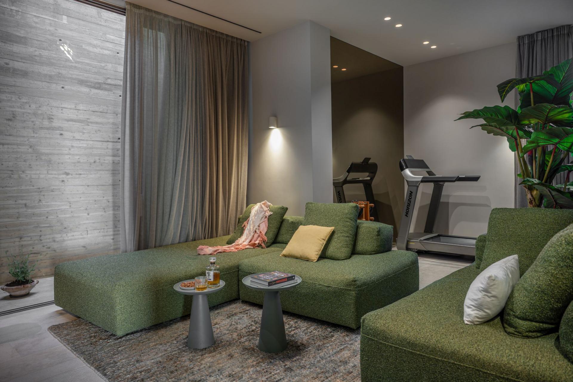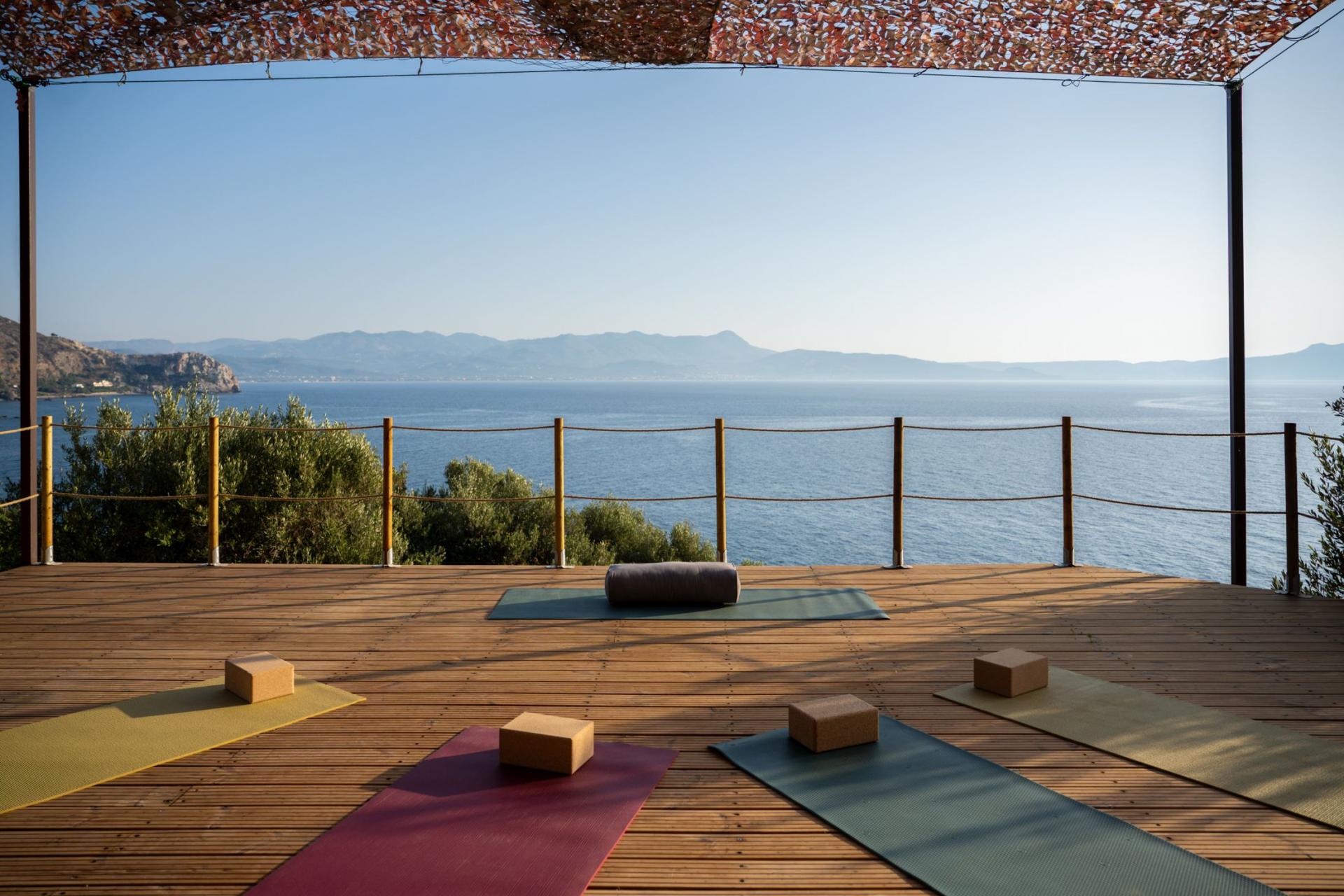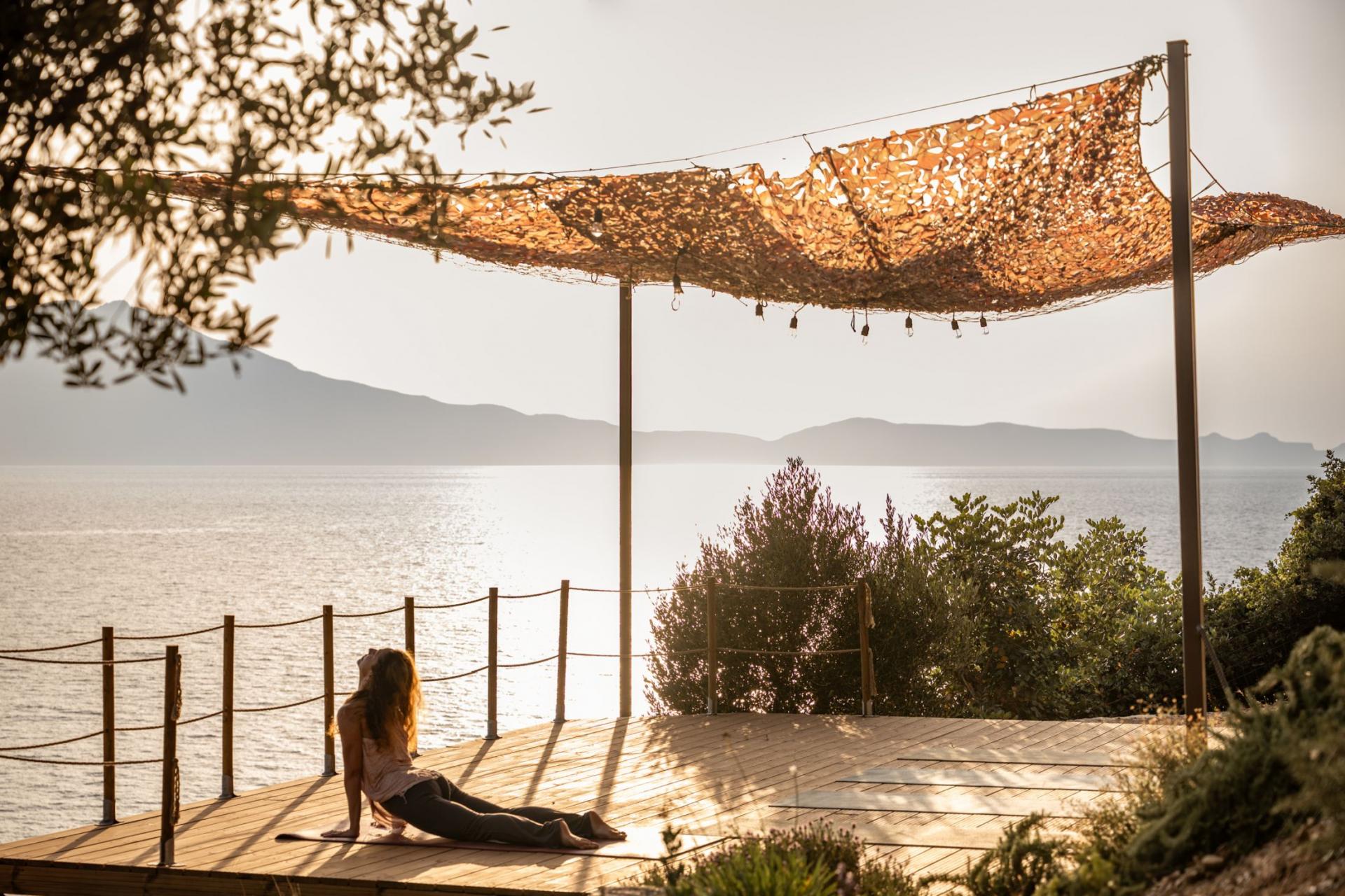 Bliss House Villa takes advantage of direct beach access to a small cove, equipped with straw parasols and comfy loungers, to relax by the water's edge. Alternatively, a yoga terrace encourages guests to begin their mornings with a harmonious start, whilst still benefitting from incredible sea views and the horizon. Nestled inside the villa, a TV come fitness room offers a spot for leisure, whether continuing workout routines on the treadmill or catching up on a TV series on green lounge sofas. Additionally, a steam room within one of the bedrooms gives further options to unwind.