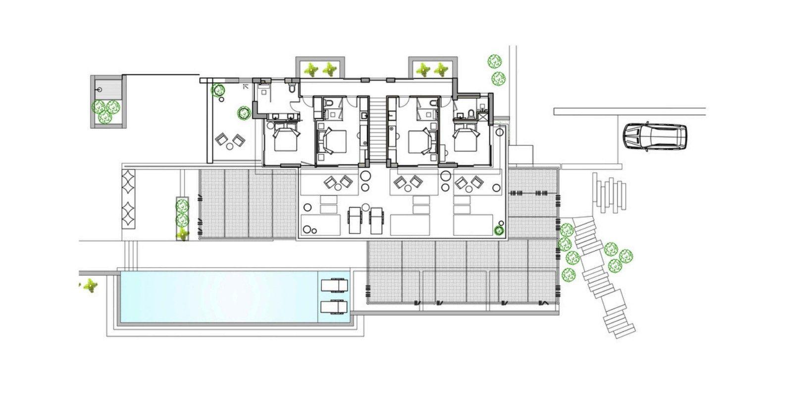 The villa can host 12-14 guests across its six beautiful double bedrooms. Spread across both levels of the property, each bedroom follows a similar design as the rest of the villa, exuding elegance and opulence through calming hues and delightful furnishings. All bedrooms take advantage of en-suite amenities, offering convenience and comfort, whilst a few rooms benefit from additional outdoor showers too. For luxury, the majority also have access to outdoor balconies or terraces. Flexible sleeping configurations are catered for through twin bed arrangements and additional children's beds amongst a handful of bedrooms.
