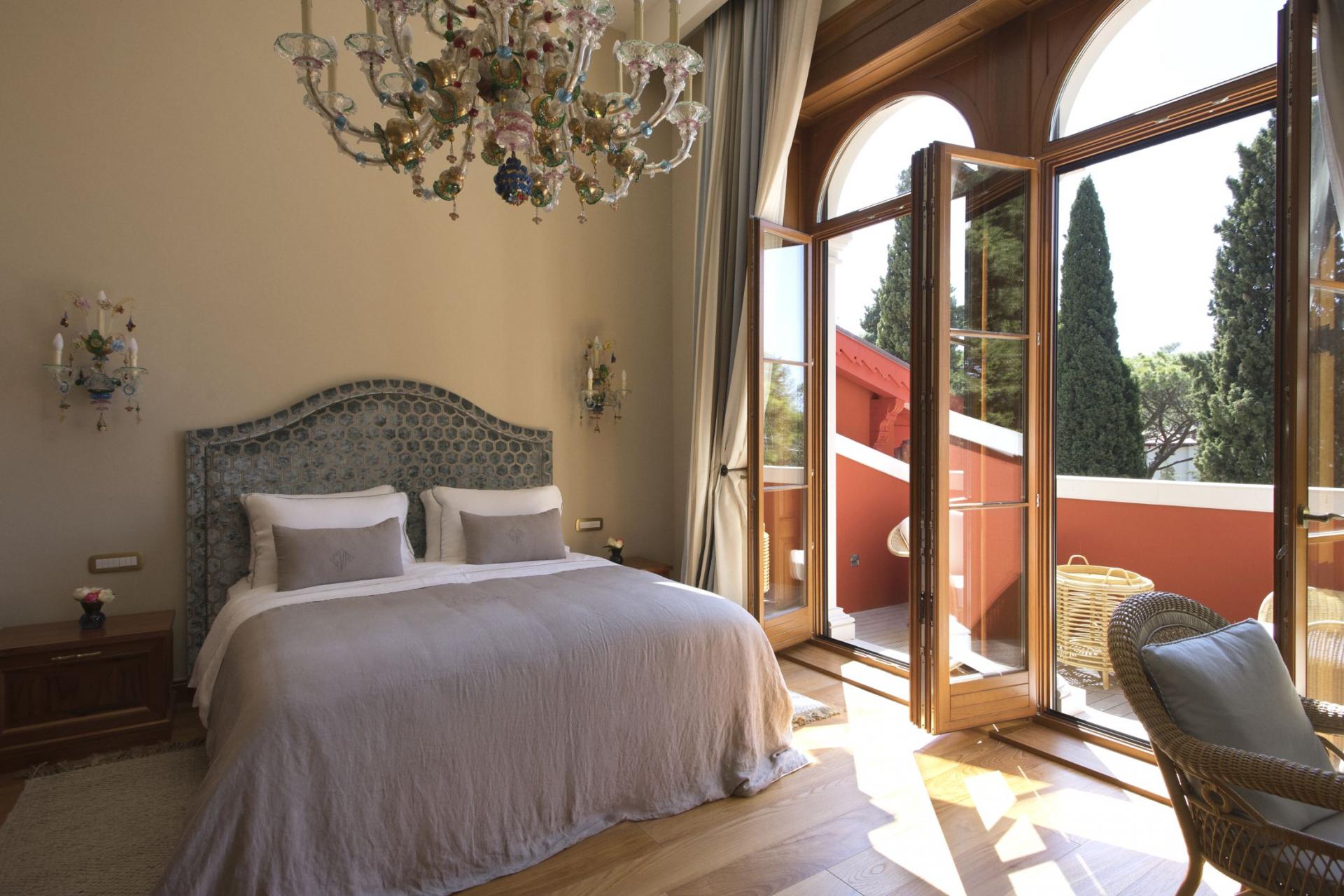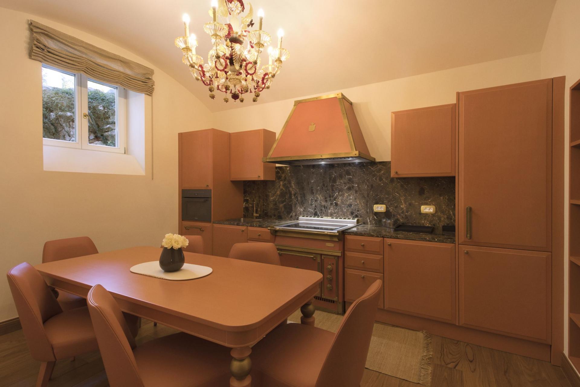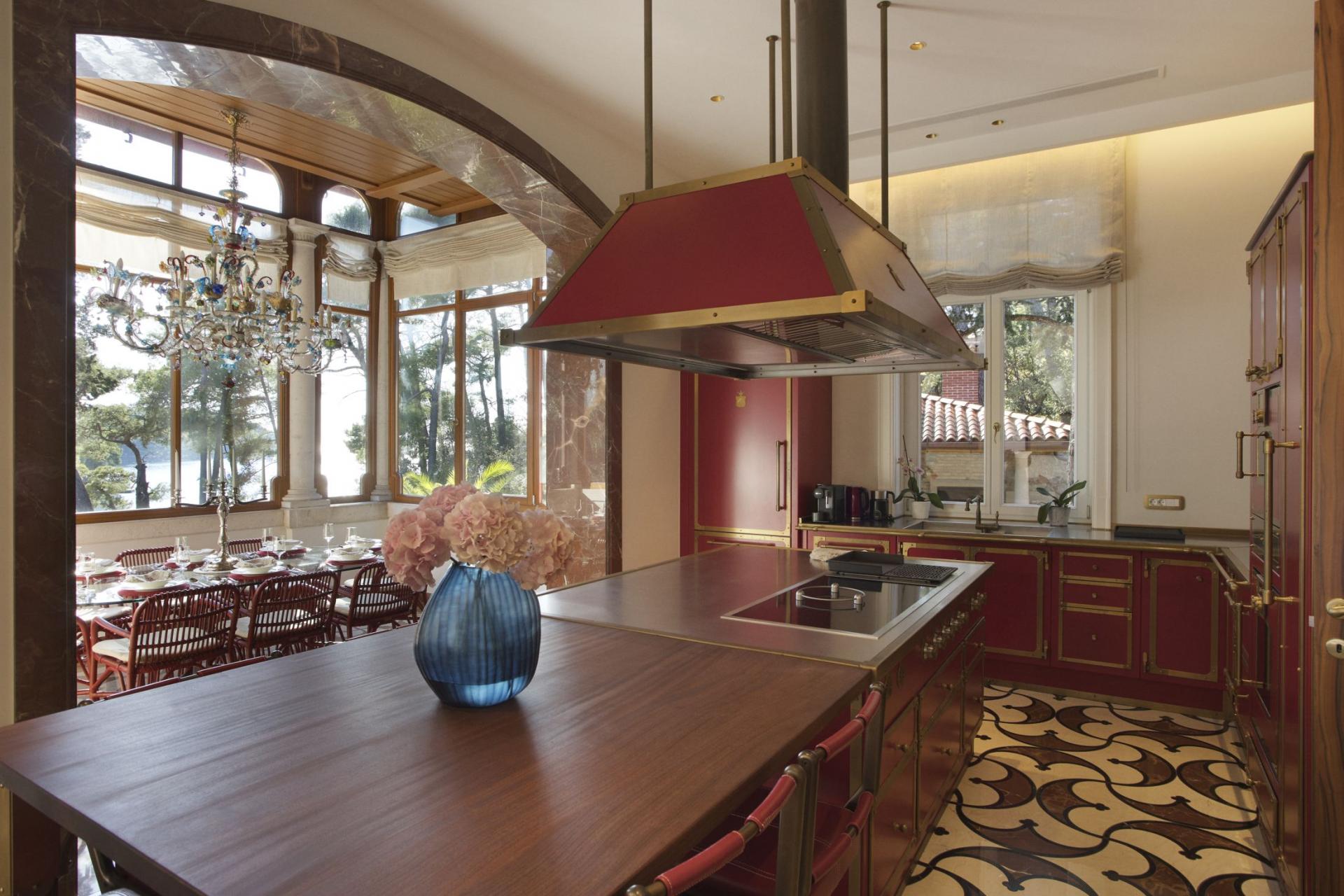 Inside, Captain's Villa Rouge houses three separate living areas, on the ground, first and attic floors, all beautifully furnished to exude a refined and sophisticated style. Take a moment to appreciate the exquisite decor across the villa's interiors, made up of stonework and chandeliers that add to the nautical theme and perfectly match views out towards the Adriatic Sea. Each elegant living space adopts an open-plan layout and high ceilings, designed with convivial living in mind. Dining spaces and stylish kitchens adjoin comfortable lounges for meal preparations, whilst a separate staff kitchen allows for further privacy before mealtimes. Picture windows and glass doors lead out to terraces and balconies, flooding each living space with natural light and leaving guests to be in awe of their coastal surroundings.