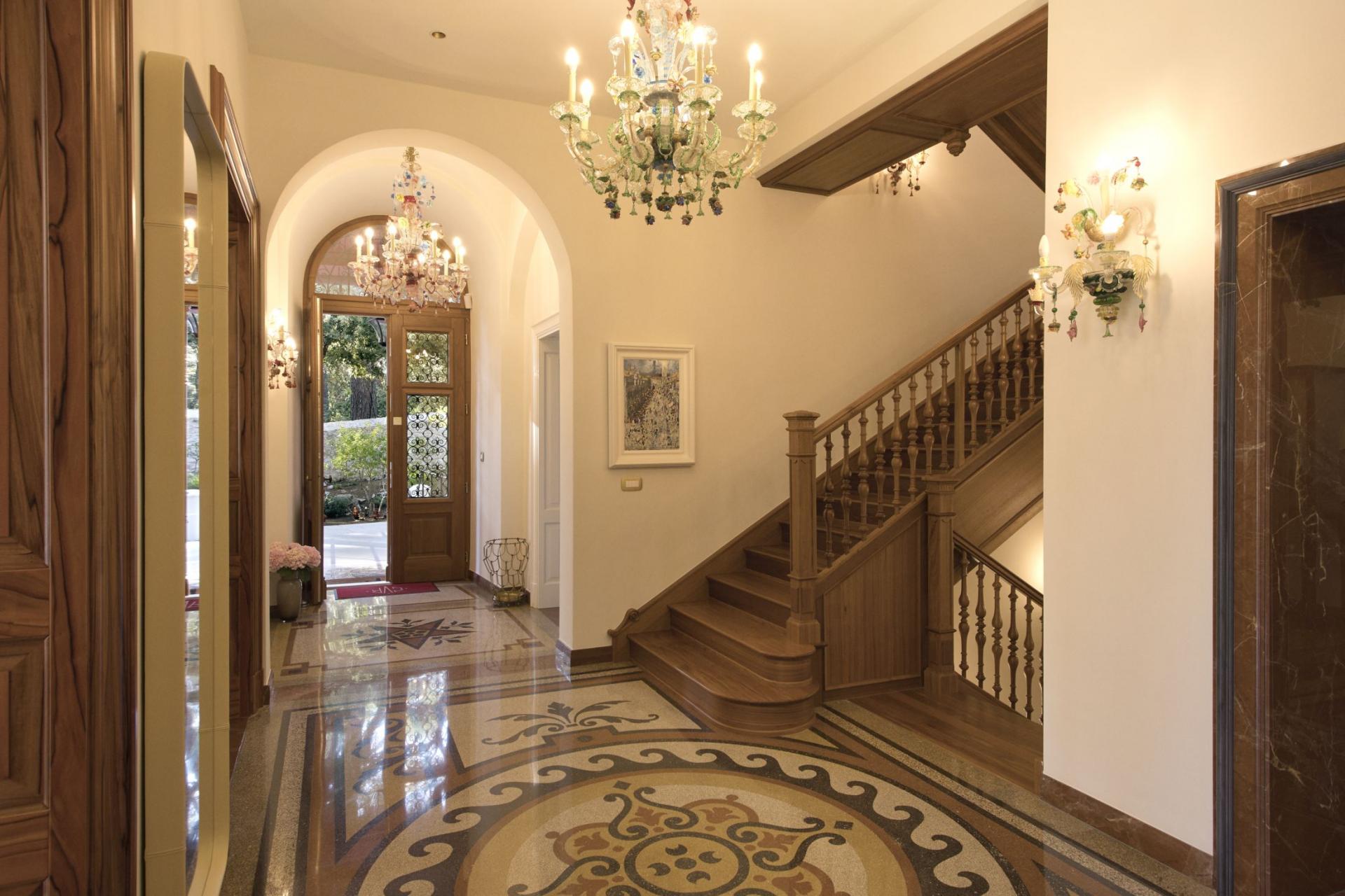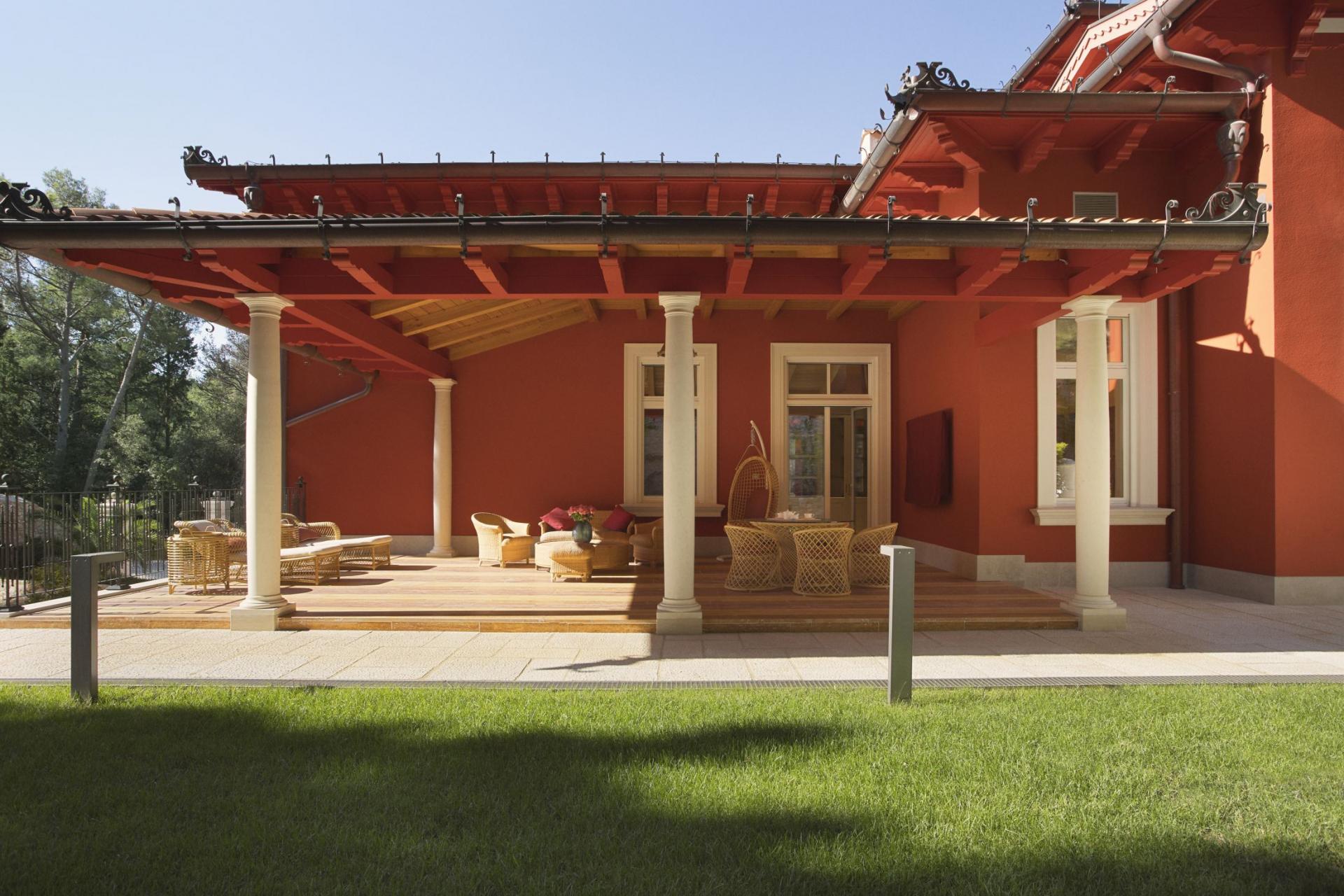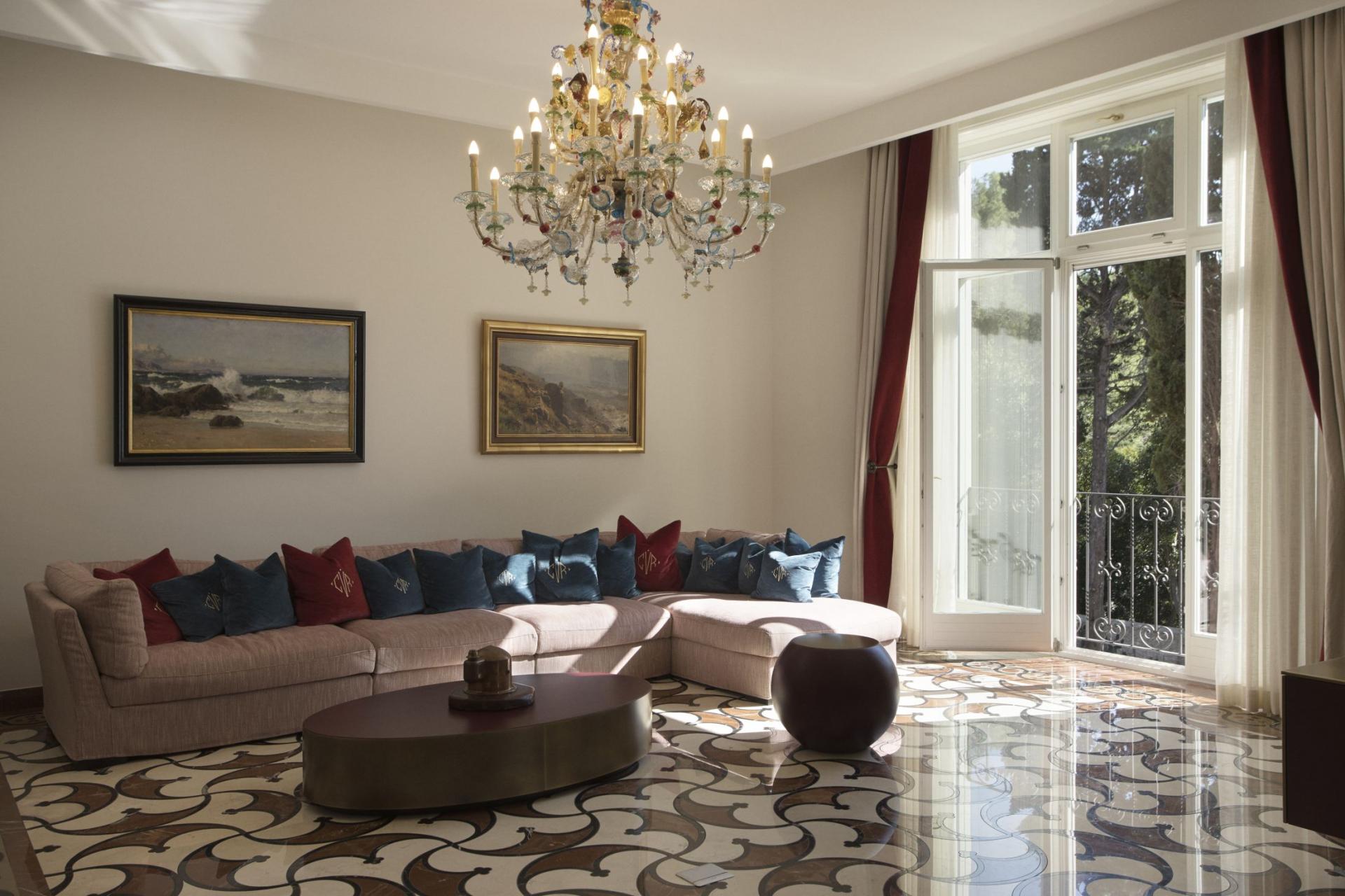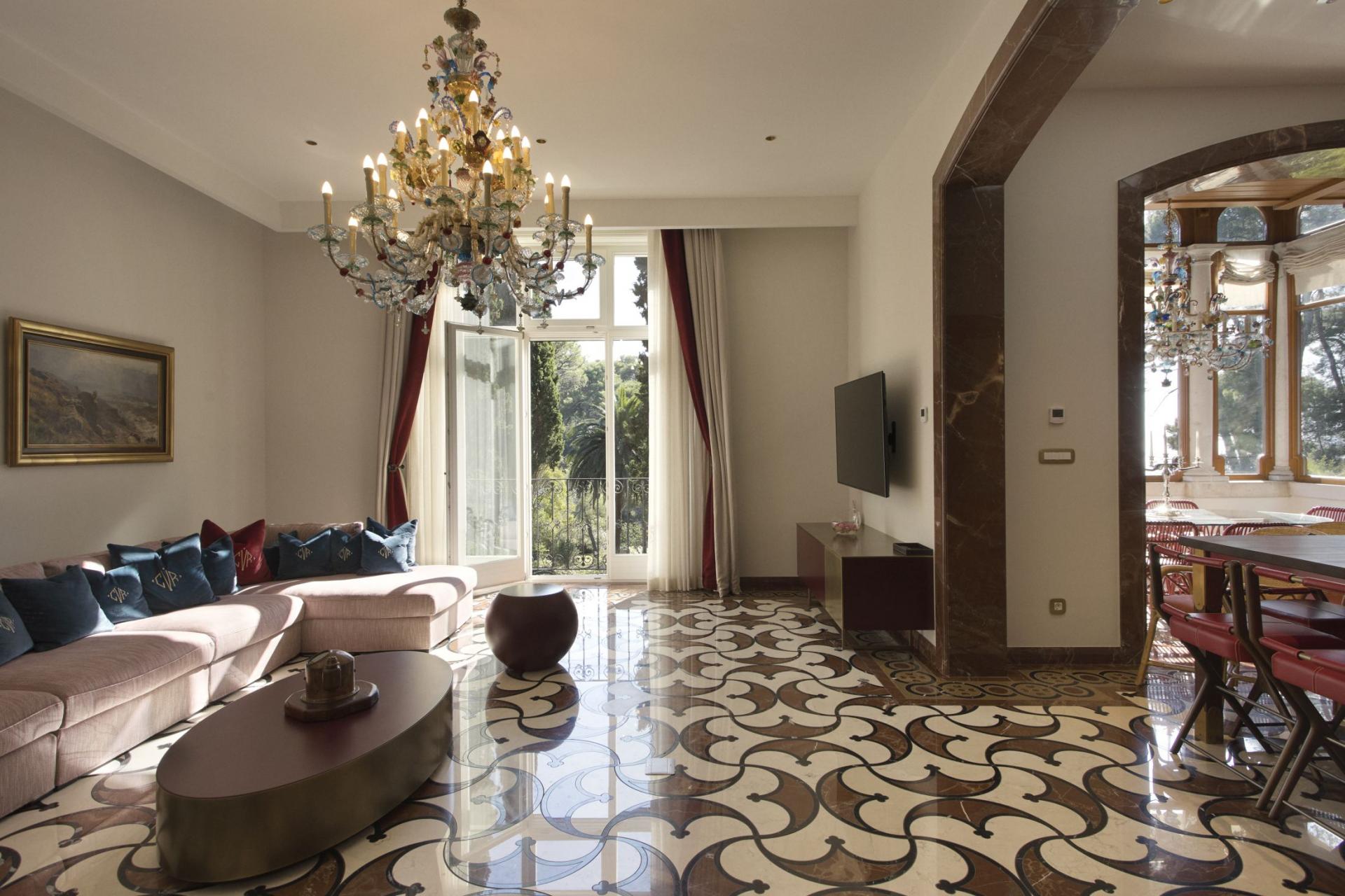 Inside, Captain's Villa Rouge houses three separate living areas, on the ground, first and attic floors, all beautifully furnished to exude a refined and sophisticated style. Take a moment to appreciate the exquisite decor across the villa's interiors, made up of stonework and chandeliers that add to the nautical theme and perfectly match views out towards the Adriatic Sea. Each elegant living space adopts an open-plan layout and high ceilings, designed with convivial living in mind. Dining spaces and stylish kitchens adjoin comfortable lounges for meal preparations, whilst a separate staff kitchen allows for further privacy before mealtimes. Picture windows and glass doors lead out to terraces and balconies, flooding each living space with natural light and leaving guests to be in awe of their coastal surroundings.