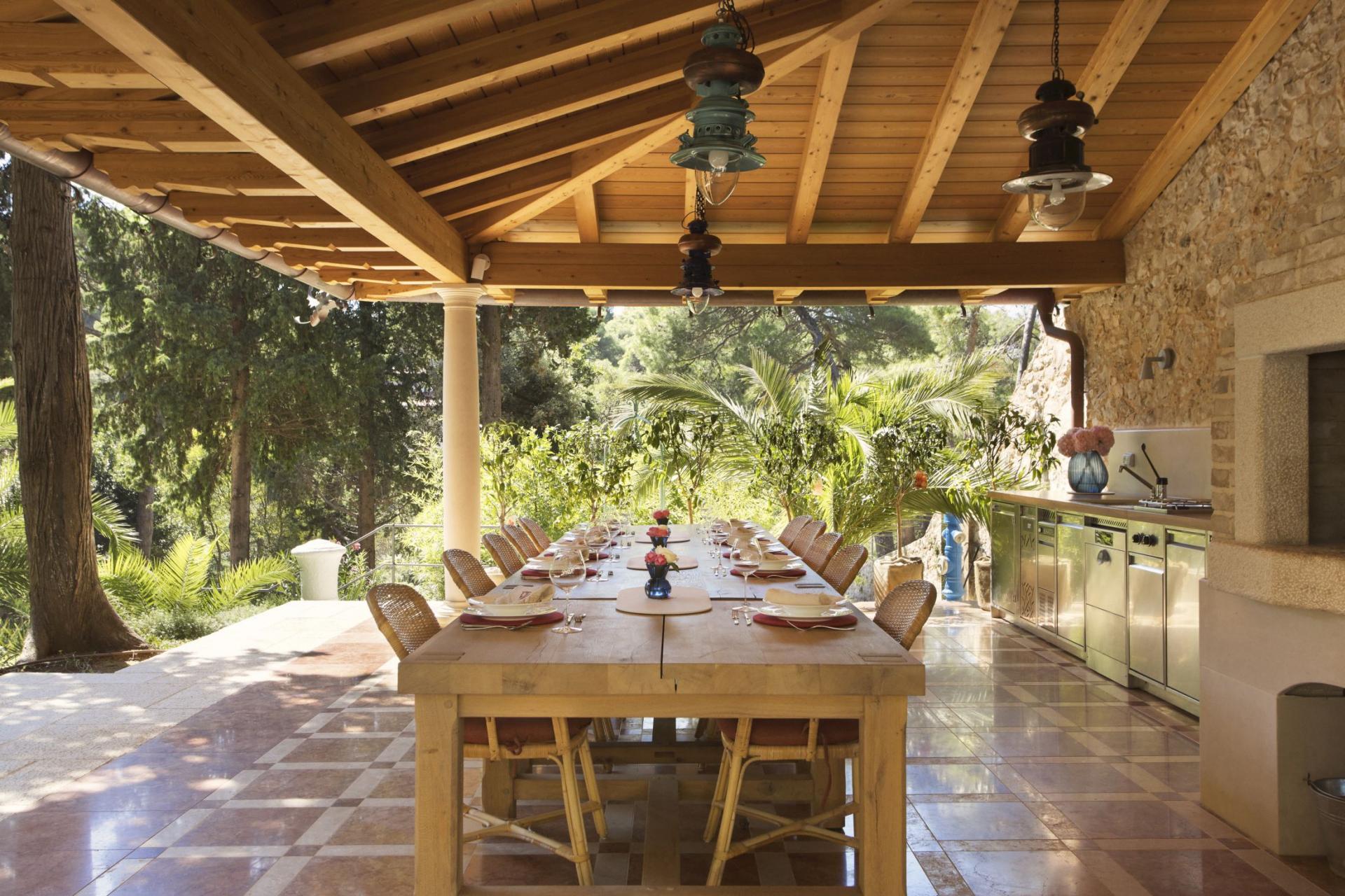 Outside, Captain's Villa Rouge features a luscious landscaped garden, perfect for relaxing. Outdoor terrace areas house an incredible heated swimming pool, hot tub and a selection of poolside loungers to recline and unwind. Alternatively, gates at the bottom of the garden lead you just a short walk from Čikat Bay for beachside relaxation. The terrace areas sit perfectly to enjoy the surroundings and sea views, whilst there's also a veranda with a kitchen, BBQ and table for alfresco dining.
