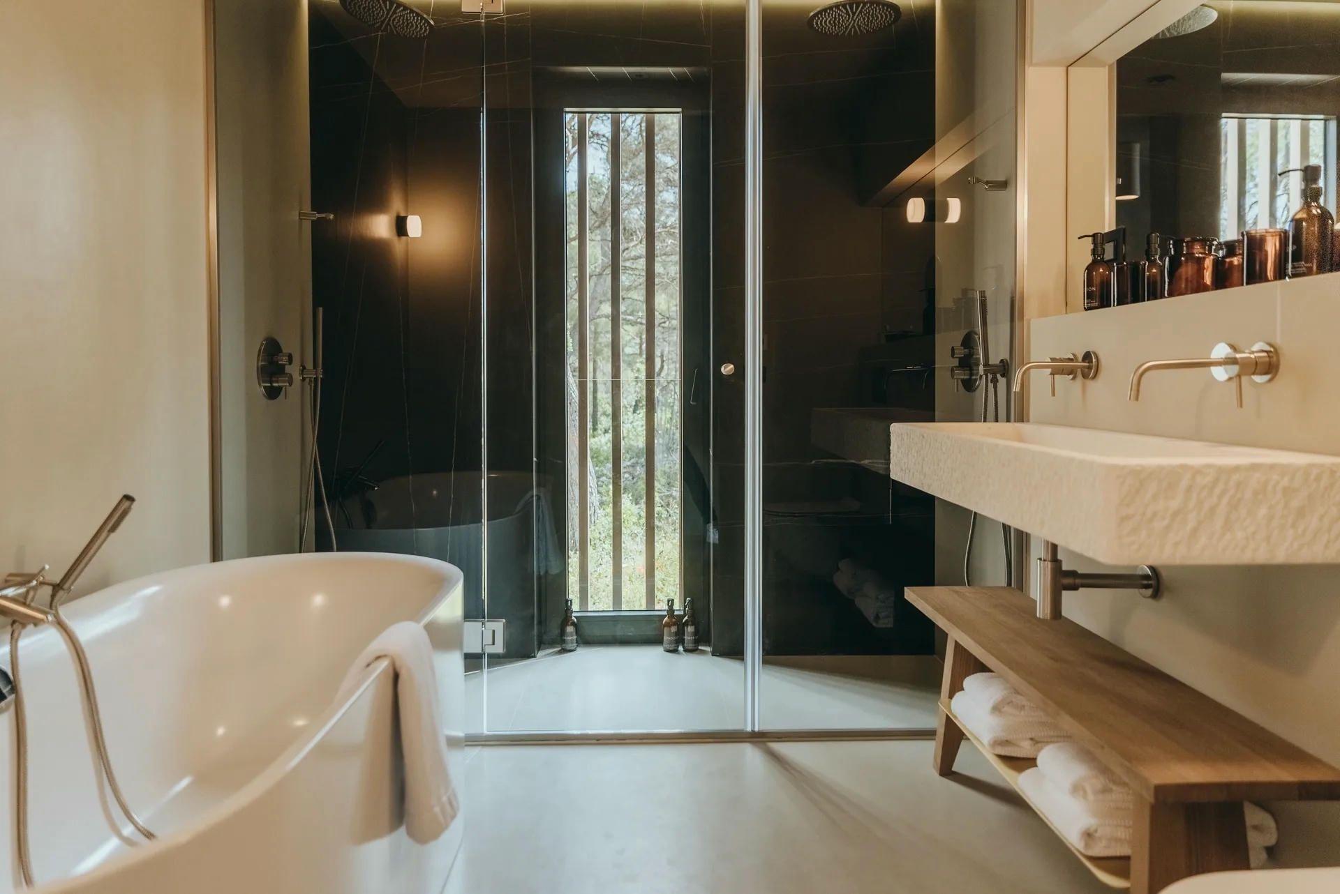 Villa Cascadia can accommodate up to 8 guests across four double bedrooms, each complete of their own en-suite facilities. Split between two floors, all rooms convey a relaxing and elegant atmosphere, and mirror the modern and minimalistic style of the rest of the property. To ensure your days always start with a memorable background, all rooms feature sea views. One of the bedrooms can be set up as twin beds, providing greater flexibility to match your group's configuration.