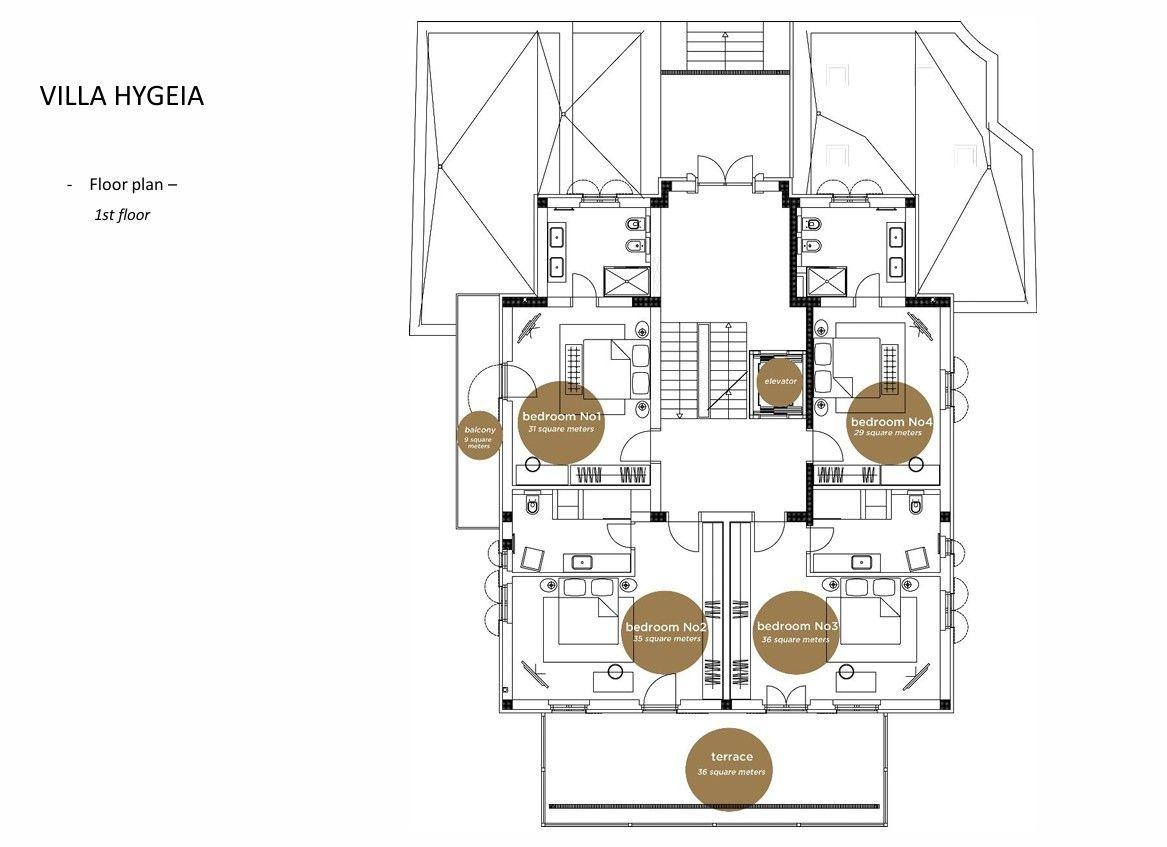 The villa also features air conditioning throughout, an internal elevator, a gated driveway with parking and security surveillance.