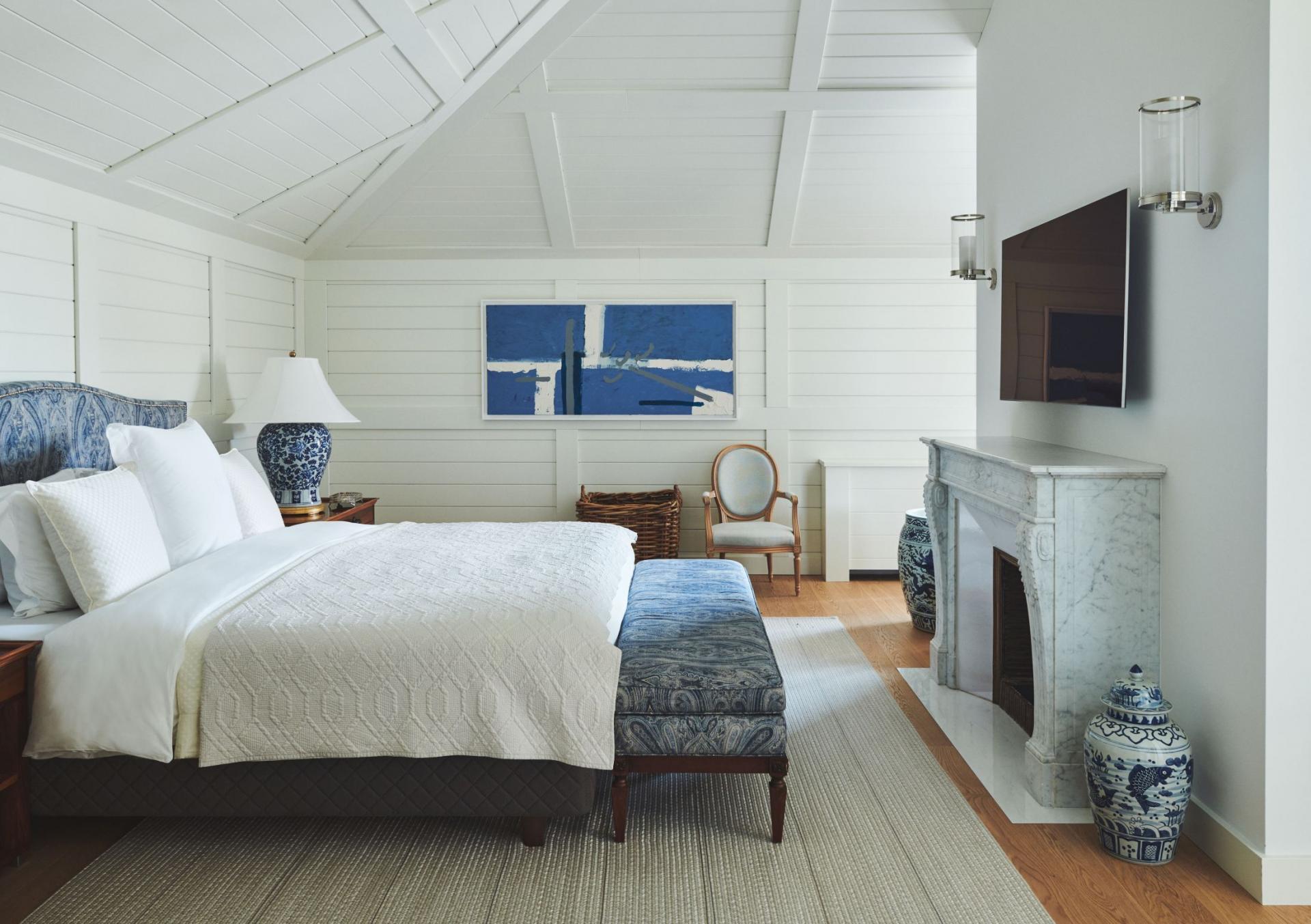 This luxury villa in Croatia comfortably accommodates 10 guests. Five elegant bedrooms are spread between the first and top floors, individual in their style whilst still adhering to the rest of the villa's deluxe feel. However it's the master that is the true highlight. Occupying a large propportion of the top floor, the master exhibits high ceilings and a coastal aesthetic, featuring whitewashed woods and acccents of blue reminiscent of Čikat Bay's close waters. It also has access to an outdoor kitchen, living area, walk-in wardrobe and, of course, a private balcony. Many other rooms also take advantage of outside access, whilst all have en-suite amenities.