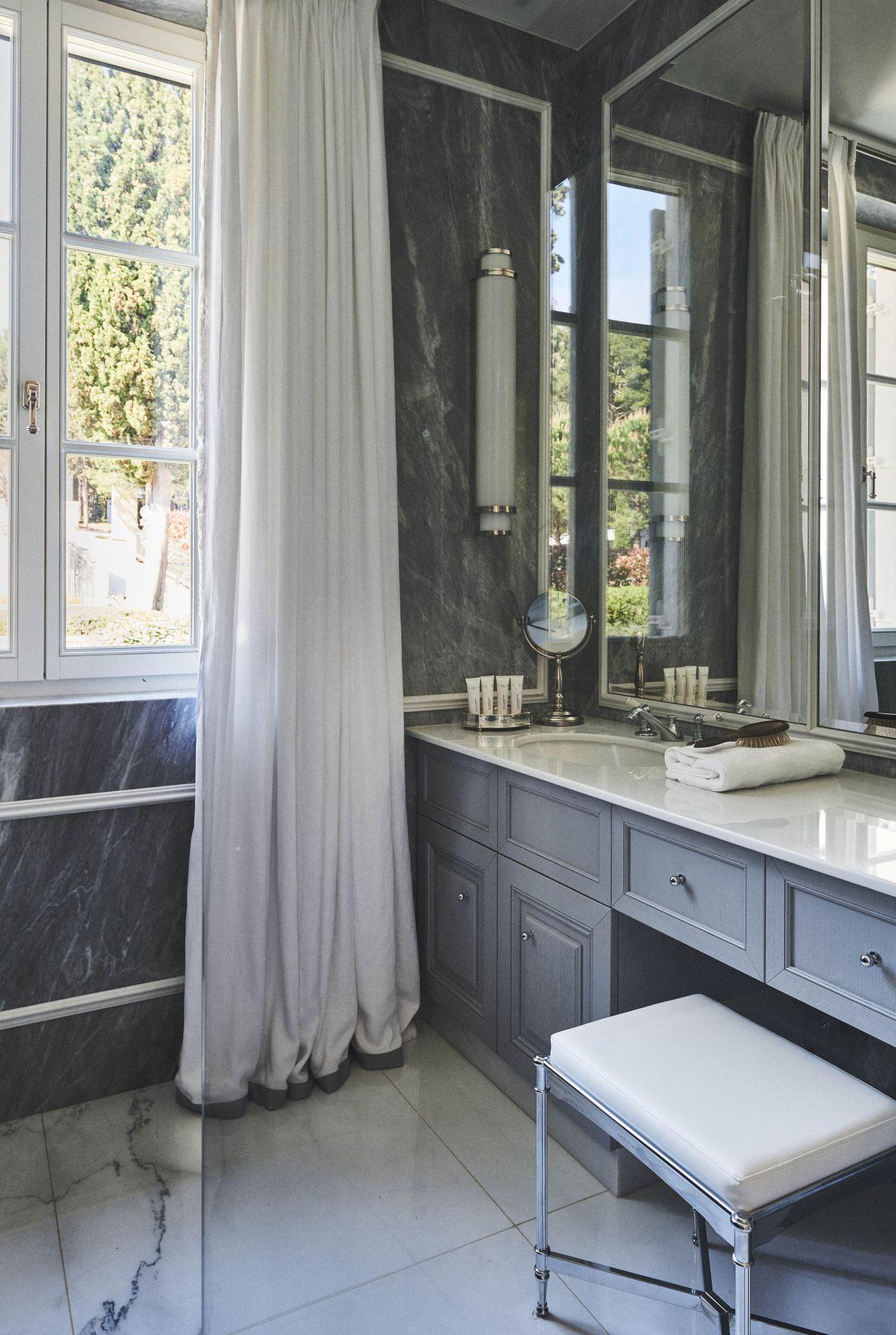 Tranquil and blissful, Villa Hygeia's luscious gardens present a true paradise for social afternoons and evenings before a beautiful seascape that protrudes through swaying trees. There's a careful mix of shade and sun-soaked spots to enjoy, whilst green hues and touches of purple wisteria add plenty of colour to this outdoor haven. Comfortable furniture on the terrace beckons for long afternoons of conversation and chilled drinks before dining alfresco in the evening as the sun sets across the bay.