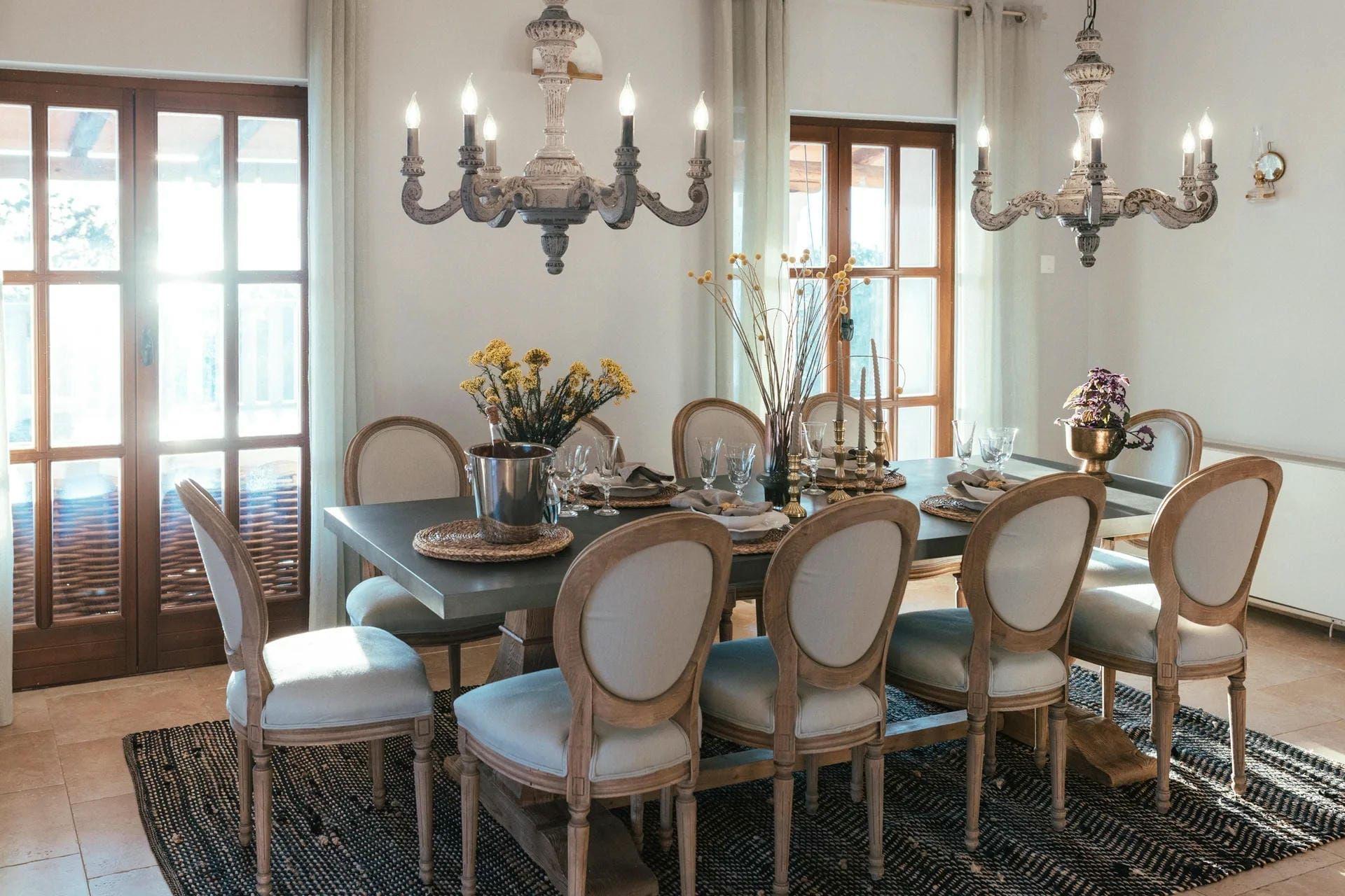 As you arrive at Villa Magran, a scenic driveway lined with ancient olive trees leads you to the main entrance. The villa, inspired by classic Mediterranean architecture, features a low-rise design with terracotta and natural stone accents, and spacious terraces that embrace the island's stunning surroundings. Inside, the villa boasts an open-plan living area with a large glass ceiling to bring in ample sunlight, comfortable sofas, and a pool table, perfect for social gatherings or tranquil moments of relaxation. Nearby, an elegant dining area, seating 10, sets the perfect atmosphere for formal dinners, while, the fully-equipped kitchen, with a breakfast bar island, will have everything you may need to prepare tasty dishes.
