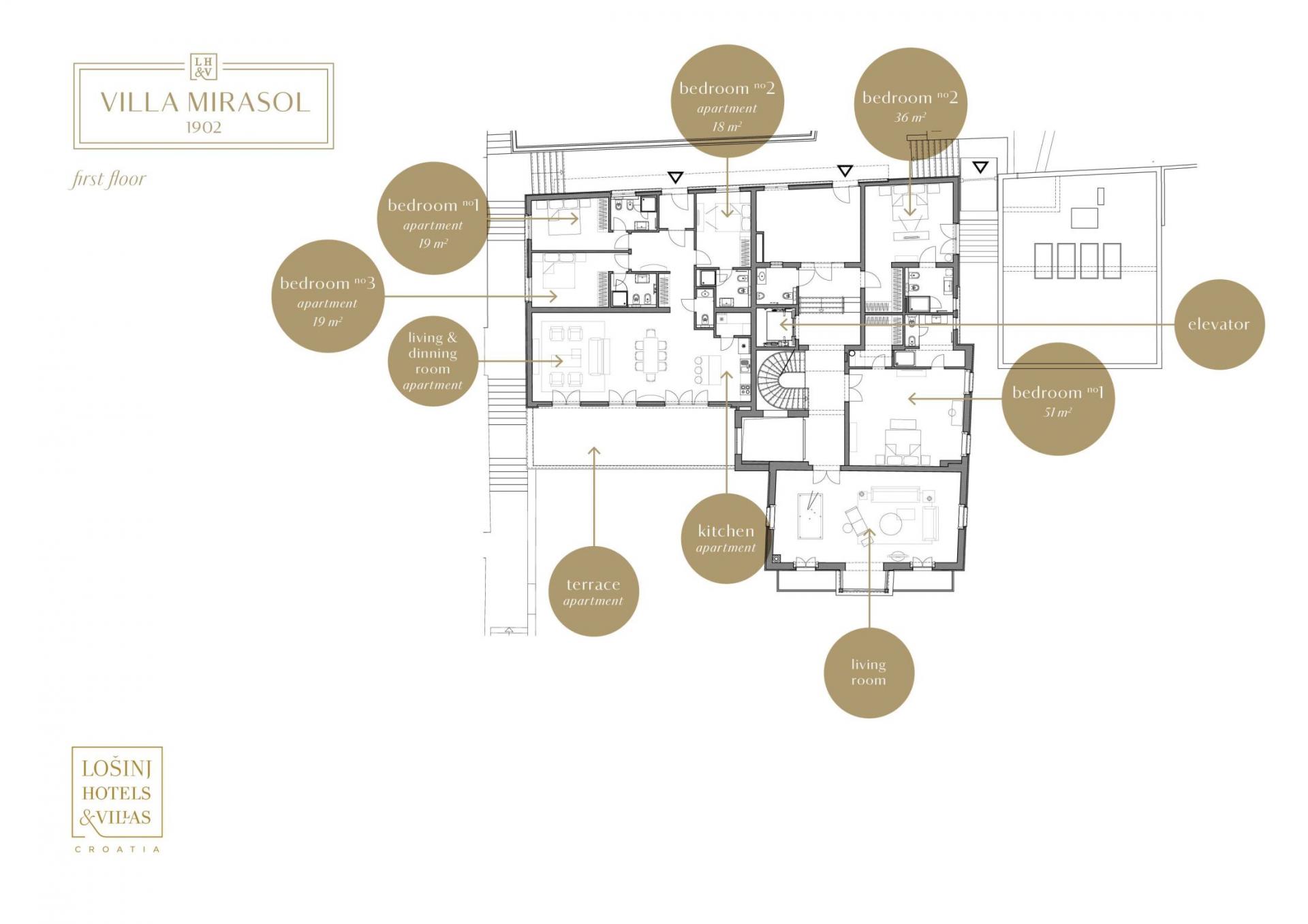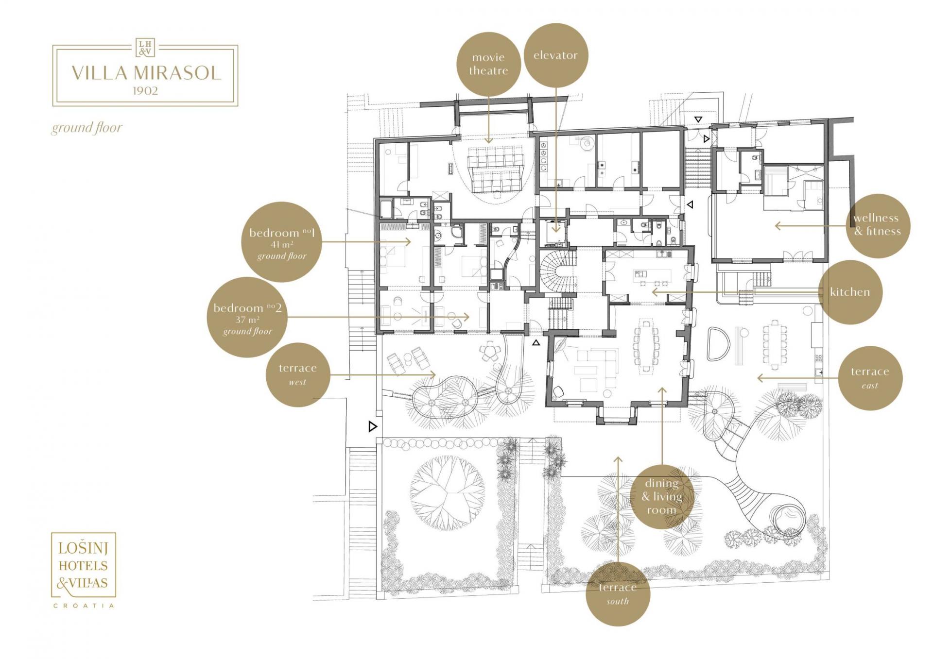 The villa is within touching distance of the beautiful blue waters of Čikat Bay, which lie only about 10m from the property's garden. Alternatively, the villa has access to the Hotel Bellevue's private beach, found a short 5-minute stroll away. Both the marina and town centre of Mali Lošinj, which features a variety of local shops, bars and restaurants, are located less than a 20-minute walk or less than 10 minutes by car. For families, Čikat Aquapark is a perfect option, under a 5-minute drive from Villa Mirasol.