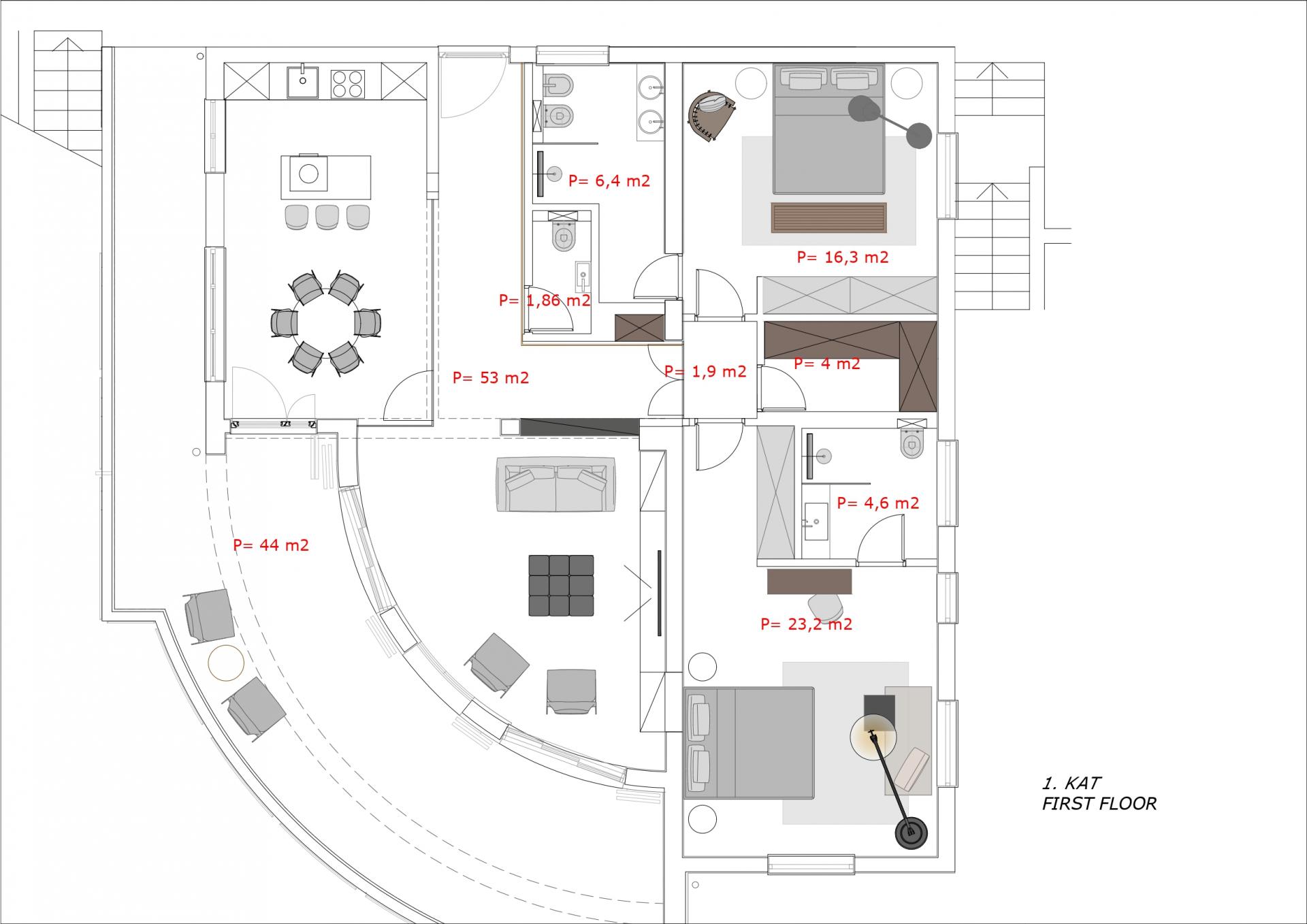 Villa Teodora can accommodate up to 12 guests across six beautiful en-suite double bedrooms. Split between four floors, all rooms have been lovingly decorated with calm tones and modern furnishing to convey a cosy atmosphere where to enjoy a well-deserved night of sleep. There are two bedrooms which can be arranged as twin beds, ideal for the kids in the group.