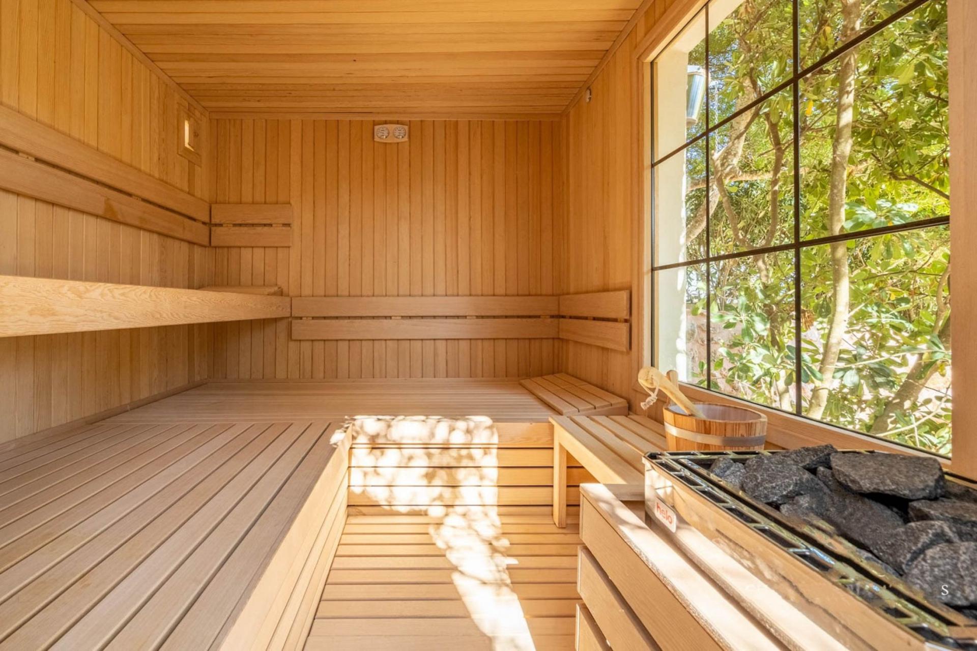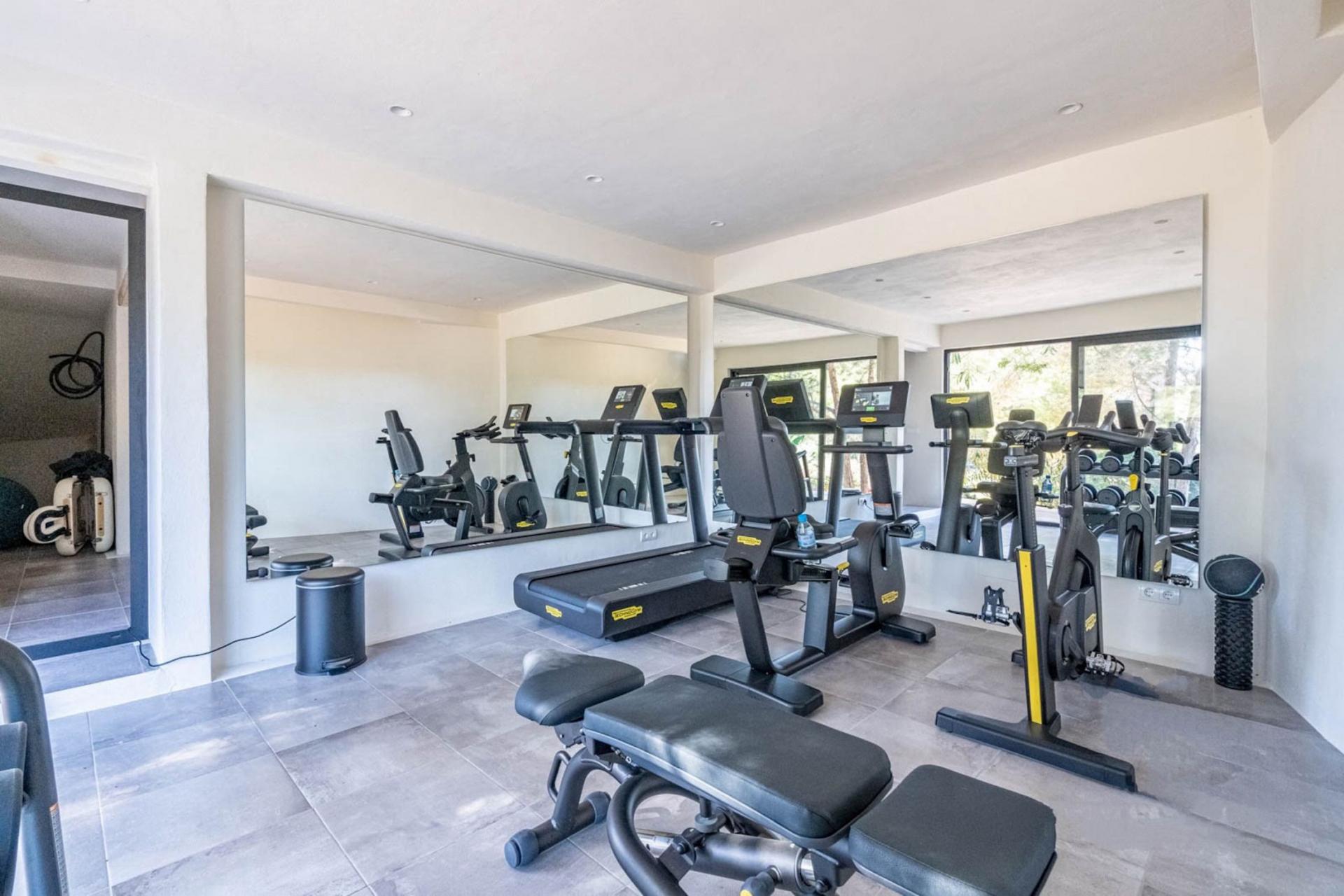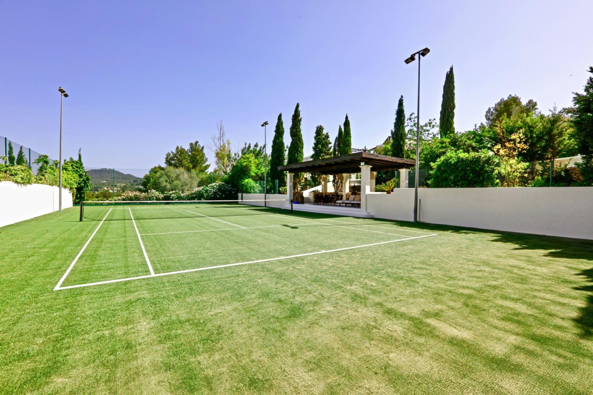 Throughgout Can Gerbera, there's plenty of options for relaxation and recreation. The shimmering pool on the outdoor terrace is ideal for adults and kids alike, featuring poolside loungers and parasols for supervision or those who wish to lose themselves in a good book. A pavilion, yoga space, gym facilities and a luxuriously soothing sauna complete the wellness experience at this Ibiza villa retreat, to truly switch off from the stresses of everyday life. Alternatively, head to the professional tennis court for friendly competitions, even featuring a spectator viewing area for those waiting their turn to play.