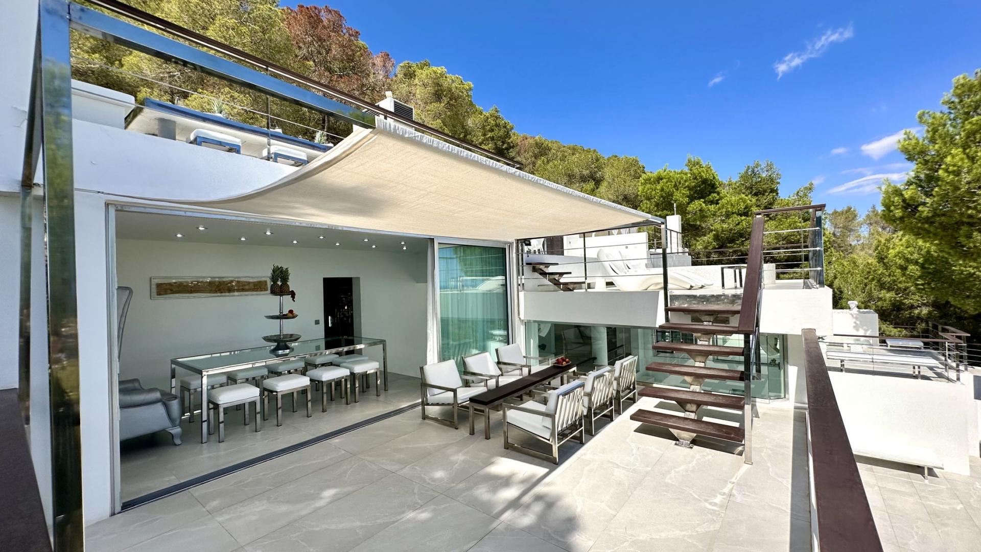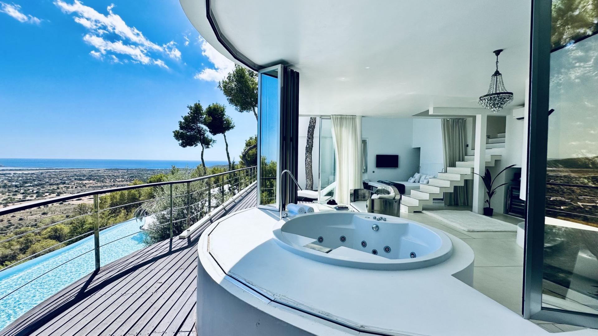 Villa Roca offers spectacular 180º panoramic views of Ibiza Old Town, the beaches of Salinas, Es Codolar and the Island of Formentera
