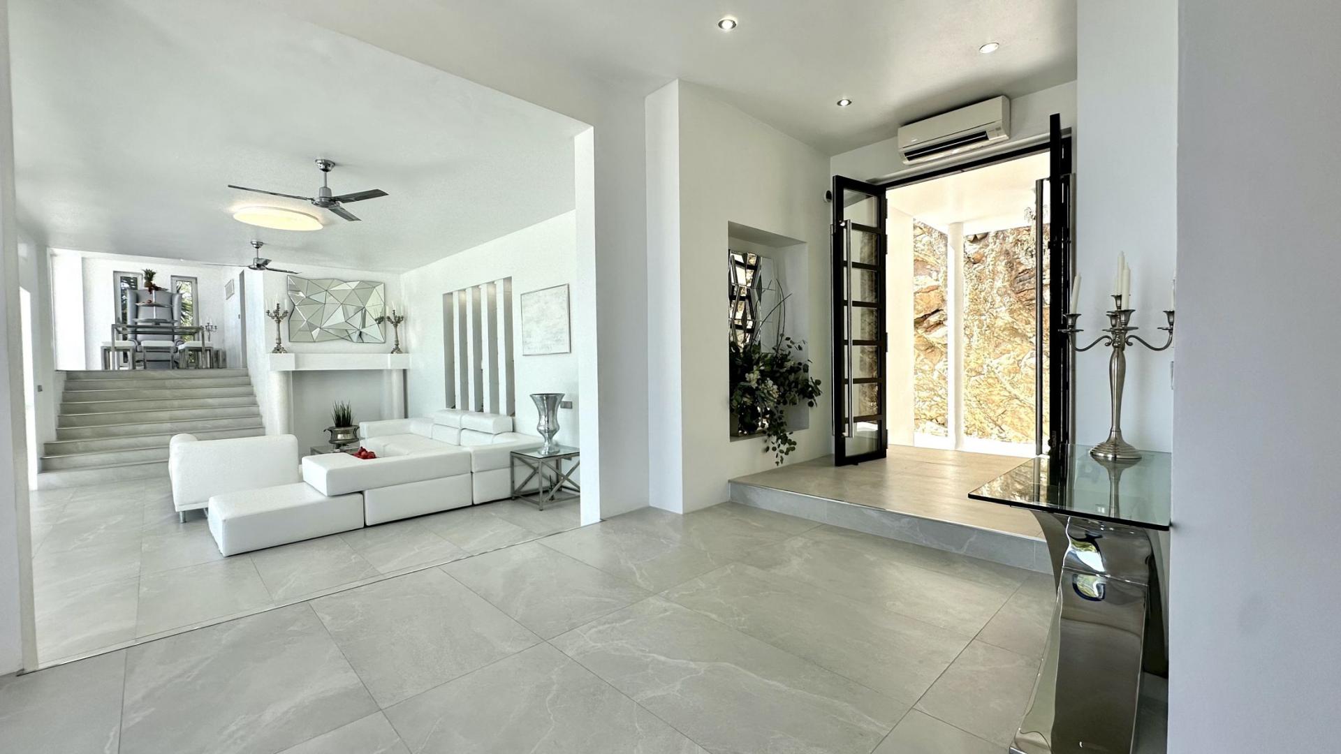 The villa is very spacious, and tastefully furnished (ultra modern-minimalist). The furniture, taps, lights etc have been specially designed for the Villa. 550 sqm (5900 sq. feet) internal living space, 600m (6460 sq. feet) of terraces and outside living areas.