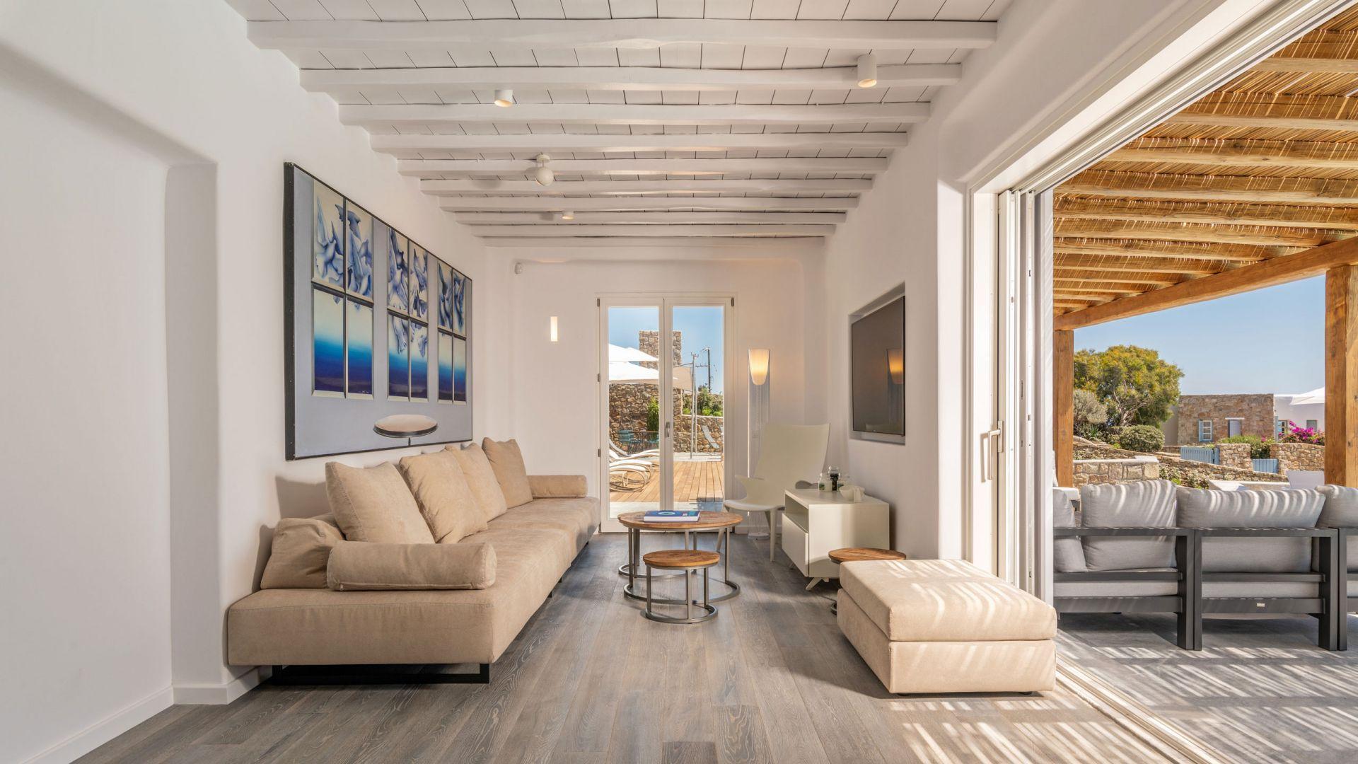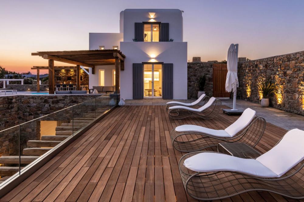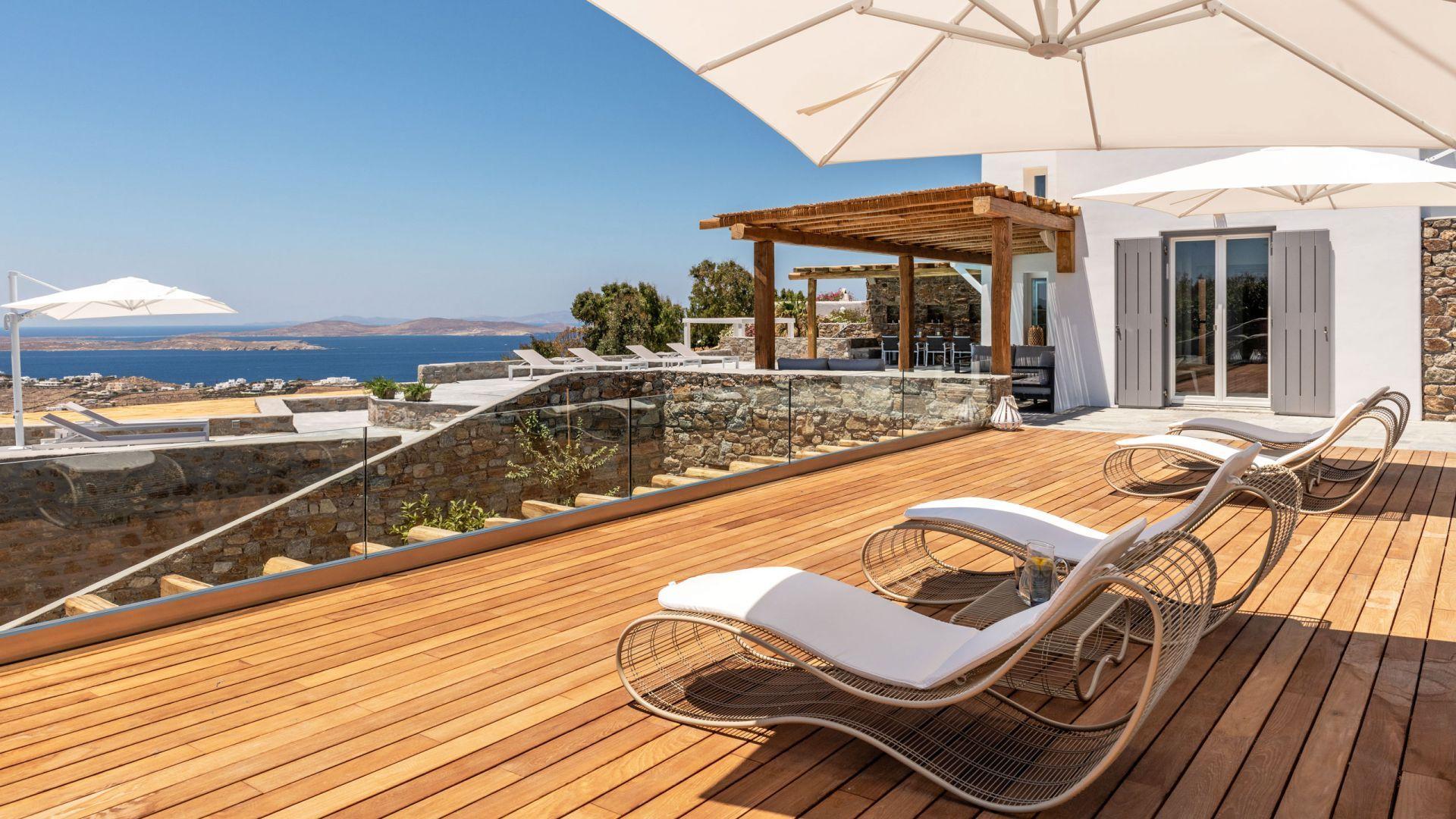 The nearest beach from the villa is 2km away, Psarou beach, which is an easy 5-minute drive and home to some amazing bars, restaurants, and a number of designer boutiques. Alternatively, a 10-minute drive away is Ornos, a quaint village with a beach lined full of restaurants, beach bars and parasols. Further east along the coast you can find the famous Paradise beach, known for its lively nightlife, which is a 15-minute drive away.