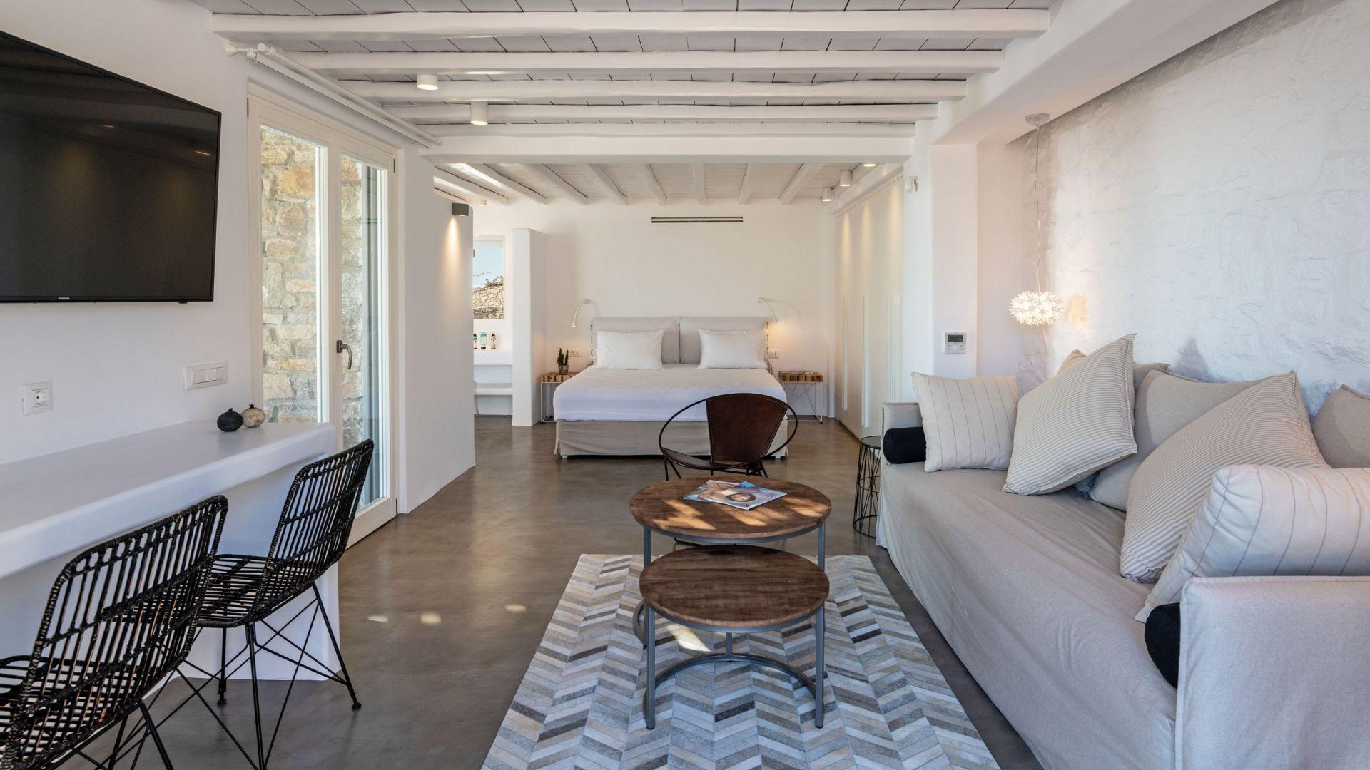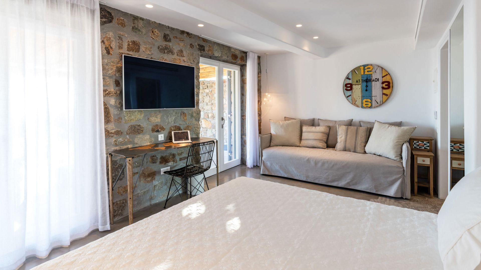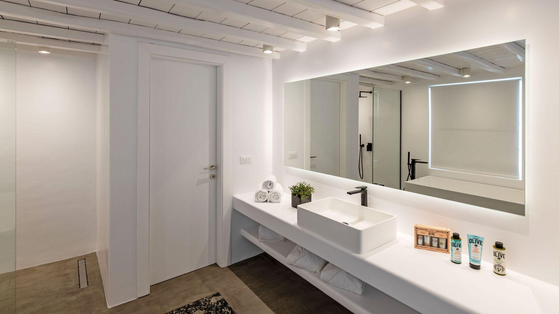 The nearest beach from the villa is 2km away, Psarou beach, which is an easy 5-minute drive and home to some amazing bars, restaurants, and a number of designer boutiques. Alternatively, a 10-minute drive away is Ornos, a quaint village with a beach lined full of restaurants, beach bars and parasols. Further east along the coast you can find the famous Paradise beach, known for its lively nightlife, which is a 15-minute drive away.