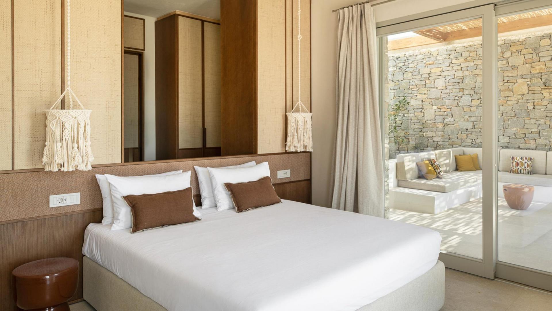 The Wanderer accommodates for a total of 12 guests across the main villa, a guest house and an independent guest apartment. All en-suite bedrooms are tastefully styled, each offering a calm and comfortable retreat at the end of the day. For additional luxury, all rooms also take advantage of access to outdoor space to begin the days of your luxury villa holiday in Paros amongst the warm climate and delightful surroundings. In the main house, the master bedroom enjoys an elevated position with lovely views and a sense of privacy, whilst the two other doubles continue the high standards. The guest house features another two rooms, whilst an independent guest apartment is well-suited to extended family groups, self-contained to even include a kitchen.