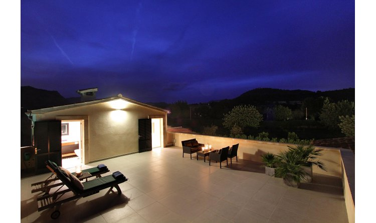 Once through the electric gates, this retreat is both private and secluded. Accommodation is centred on the main house, with living areas and a very well equipped kitchen opening onto surrounding terraces. Three bedrooms on the ground floor, each with bathroom, surround a second living area with sofas and a selection of coffee-table reading. Stairs lead to a master bedroom on the first floor, with large bathroom, including 'tub with a view', a separate dressing area, and access to a roof sun terrace with views to the bay of Pollença on the horizon.