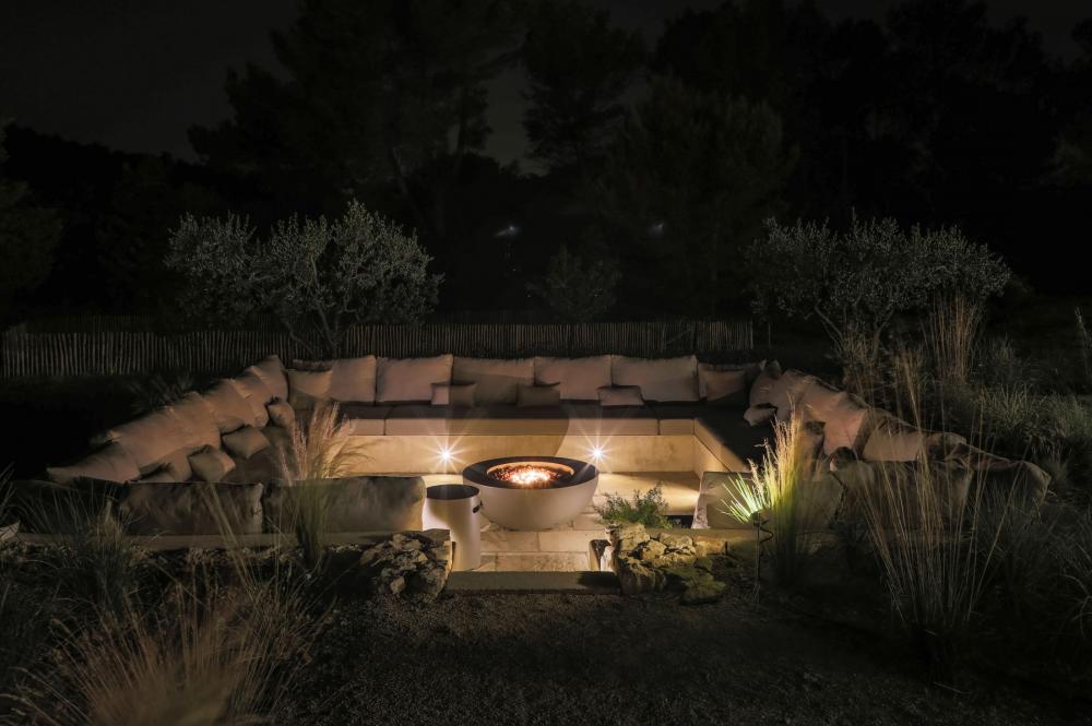The most impressive area of Villa Mas de Cinq Sous is undoubtedly its outdoor spaces, providing a peaceful and idyllic setting. The villa offers a large patio area directly outside the kitchen, where guests can enjoy mealtimes together under the gazebo or a second shaded outdoor dining area. An alternative option would be to cross the lawn to a sunken lounge area with firepit, a perfect spot for apéritifs or relaxing time with family.